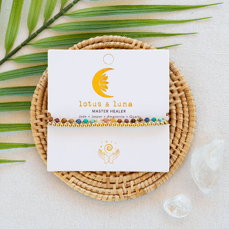 Combined Power: The set blends the powerful, chakra-aligning energy of the Master Healer stones with the radiant simplicity of the Gold Ball bracelet to focus on amplifying well-being and attracting positive energy.