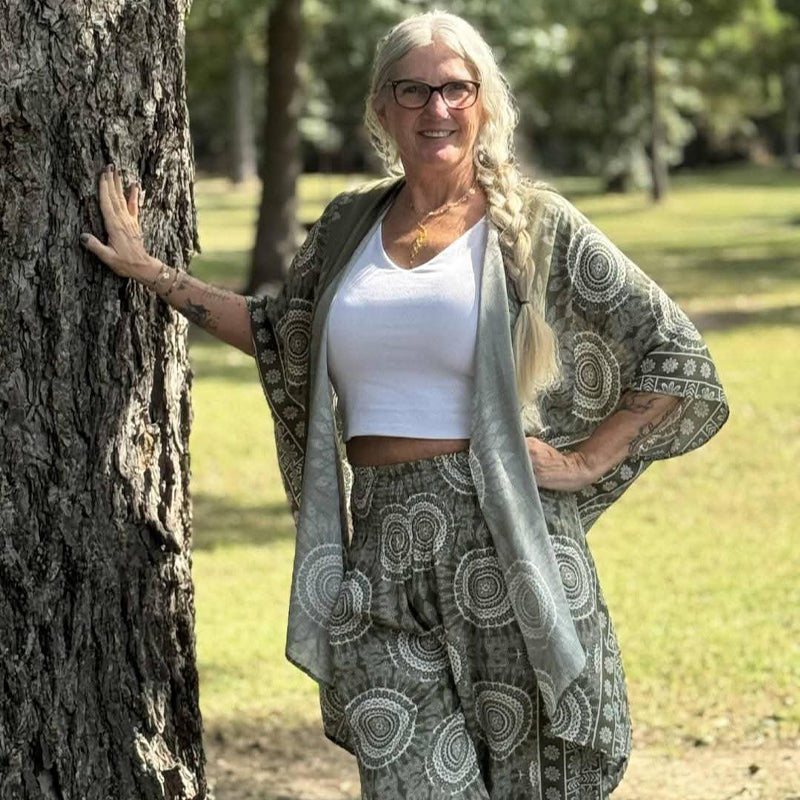 Embrace effortless style and ultimate comfort with the Tuscany Kimono & Harem Lounge Set. Crafted from our signature buttery-soft fabric, this set is designed to move with you, whether you're relaxing at home, practicing yoga, or exploring the world.