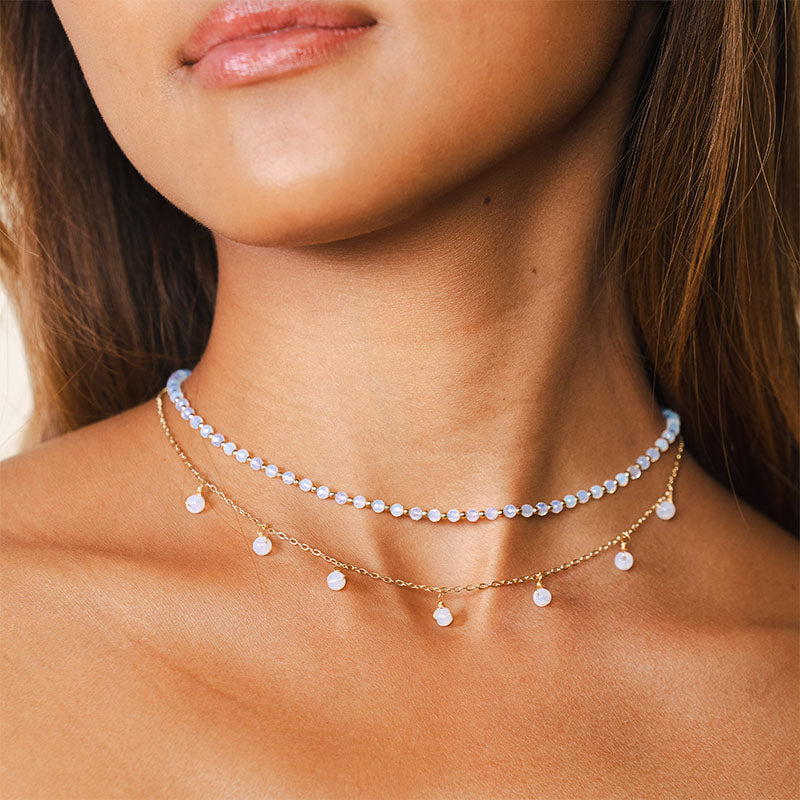 This perfectly curated jewelry set unites two essential Moonstone necklaces to create an instant, transformative stack that celebrates cosmic connection and delicate style.