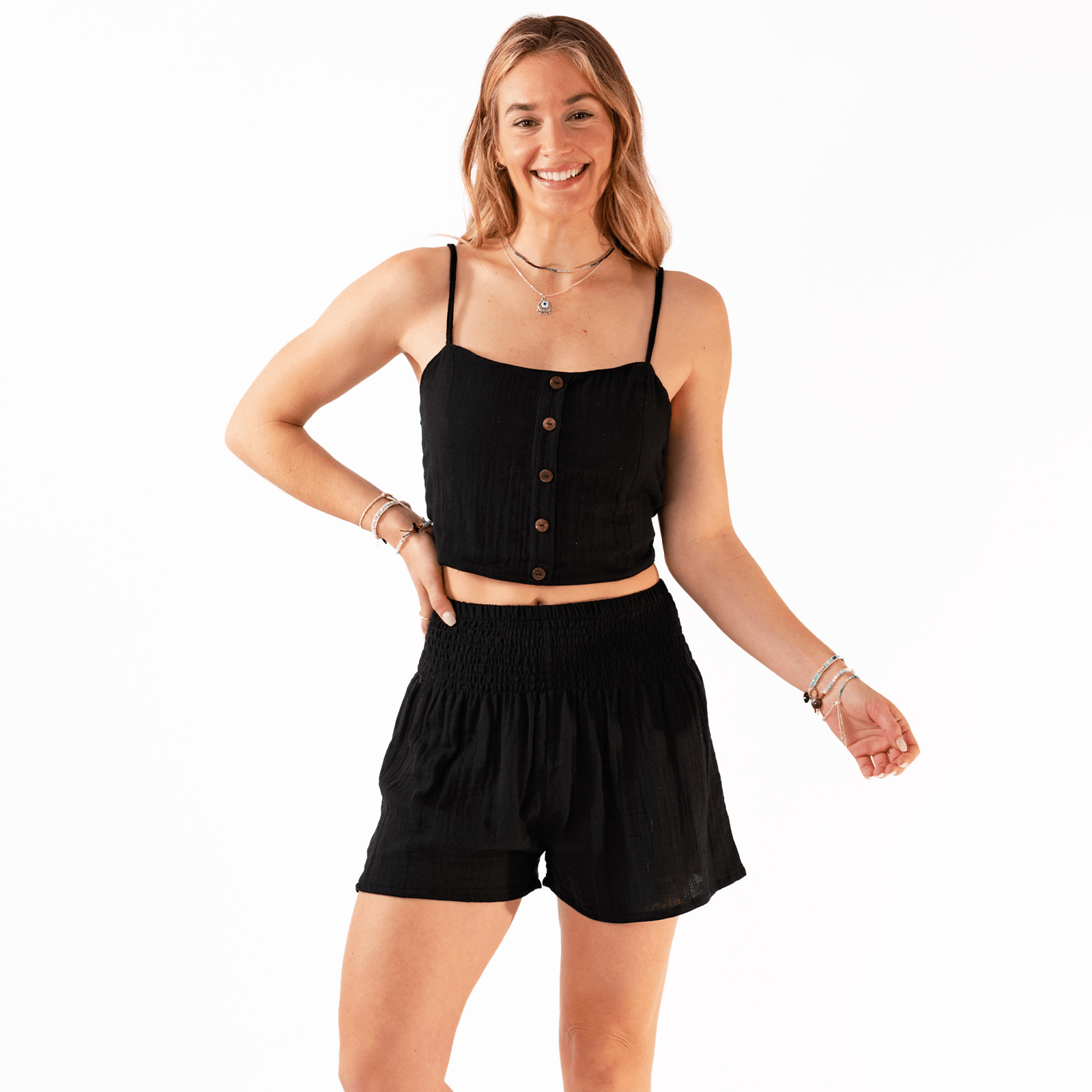 Two is always better than one! Introducing our dreamy lounge sets featuring our signature black cotton shorts and matching Cruisin' Crop Top. Wear them individually or as a full set for ultimate comfort!