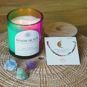 Lotus and Luna's clean burning candles inspire healing of the mind and body through intention and aromatherapy. Each style thoughtfully crafted to evoke a specific healing intention and resonate with a powerful mantra, bringing peaceful positivity into your mental and physical environment.