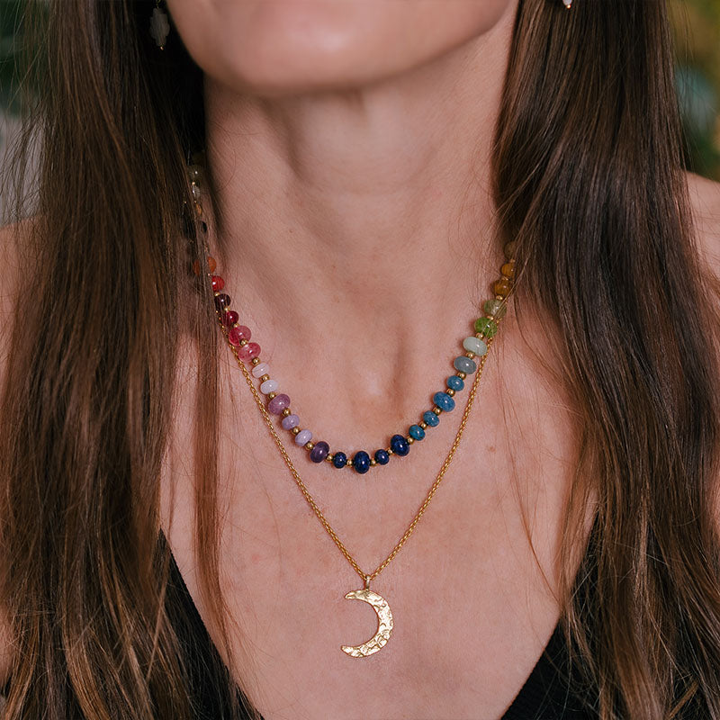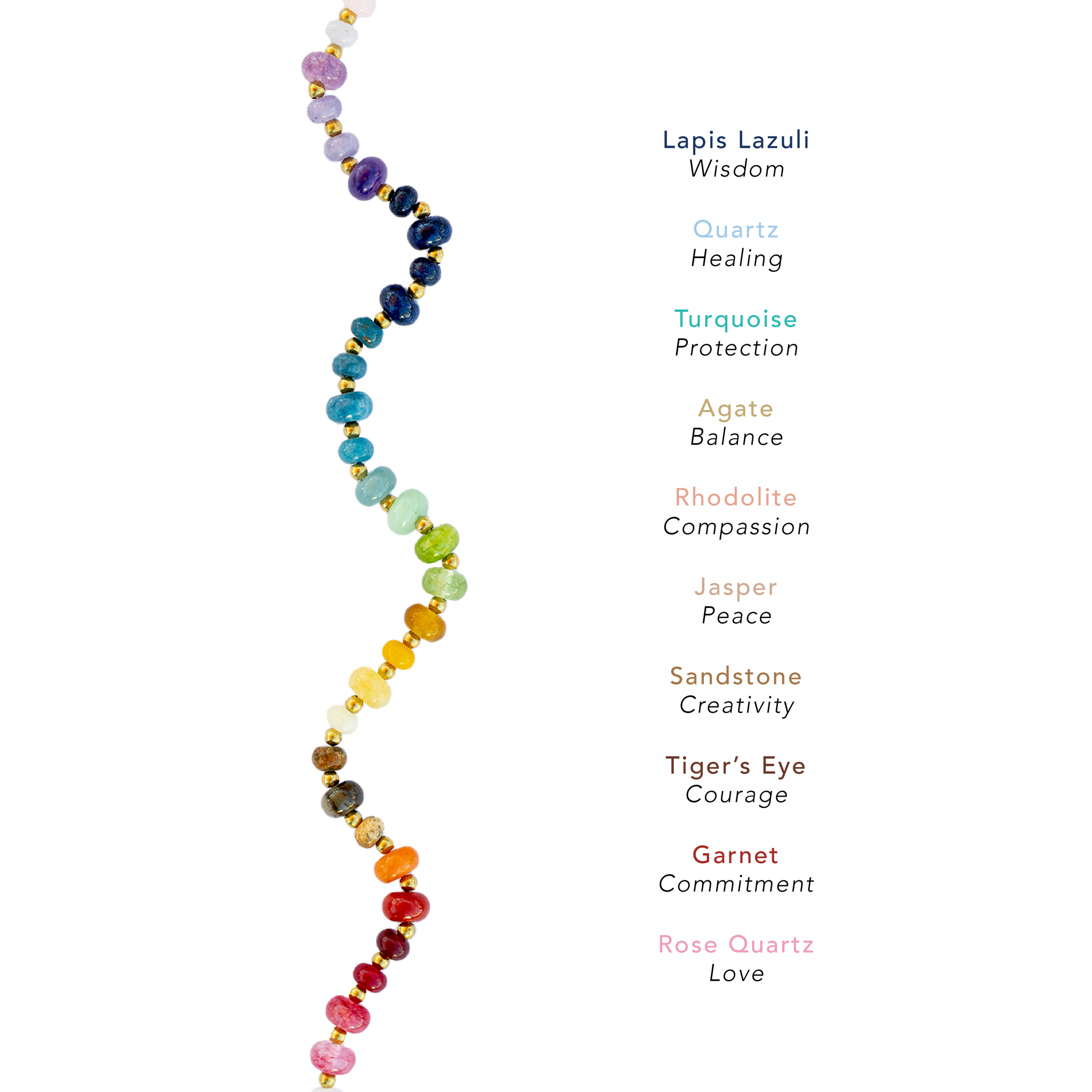 The Master Healer Necklace offers the full spectrum of healing energy stones. Stimulating all seven chakras and magnified by their proximity to each other, these powerful stones bring an all encompassing feeling of balance and healing to the mind and body.