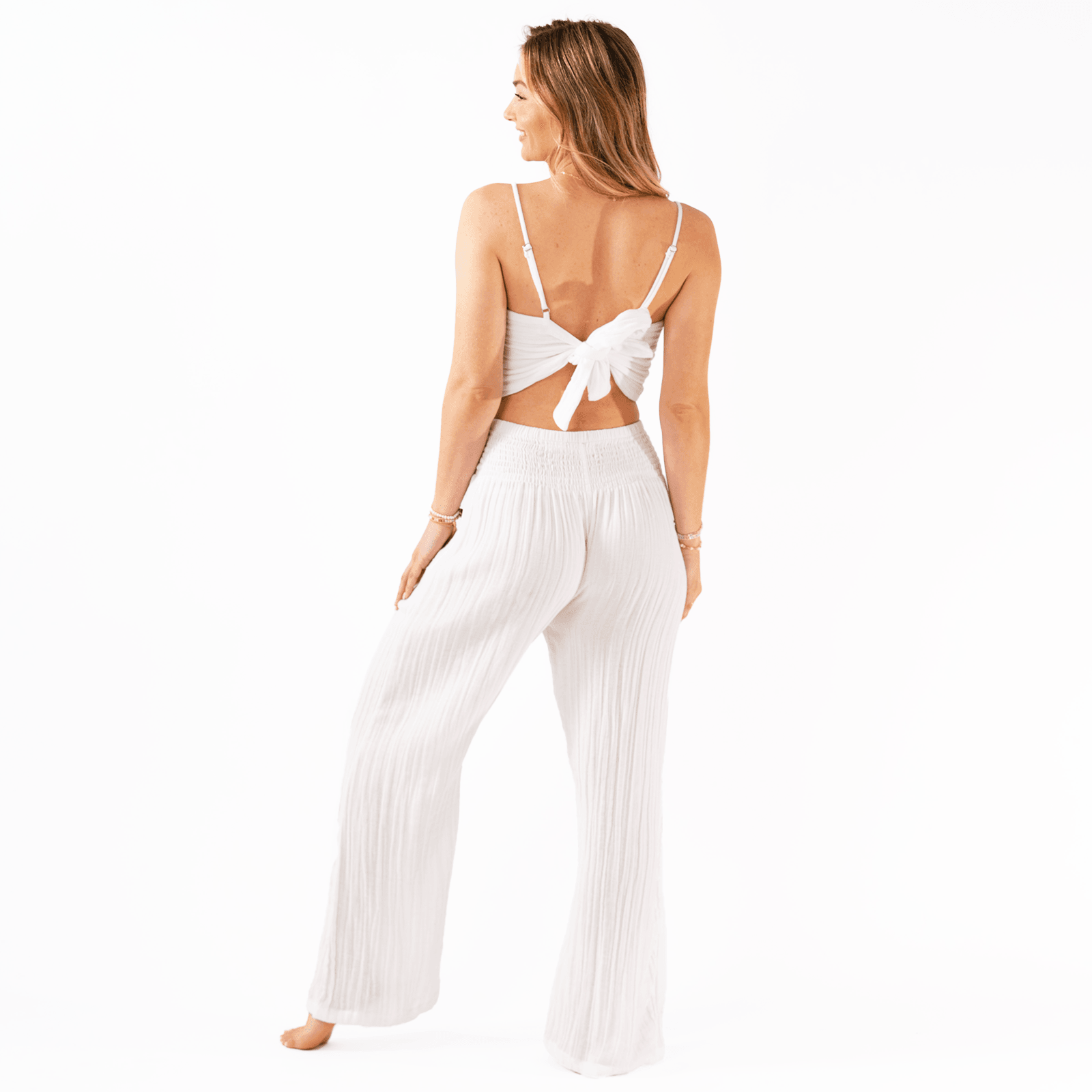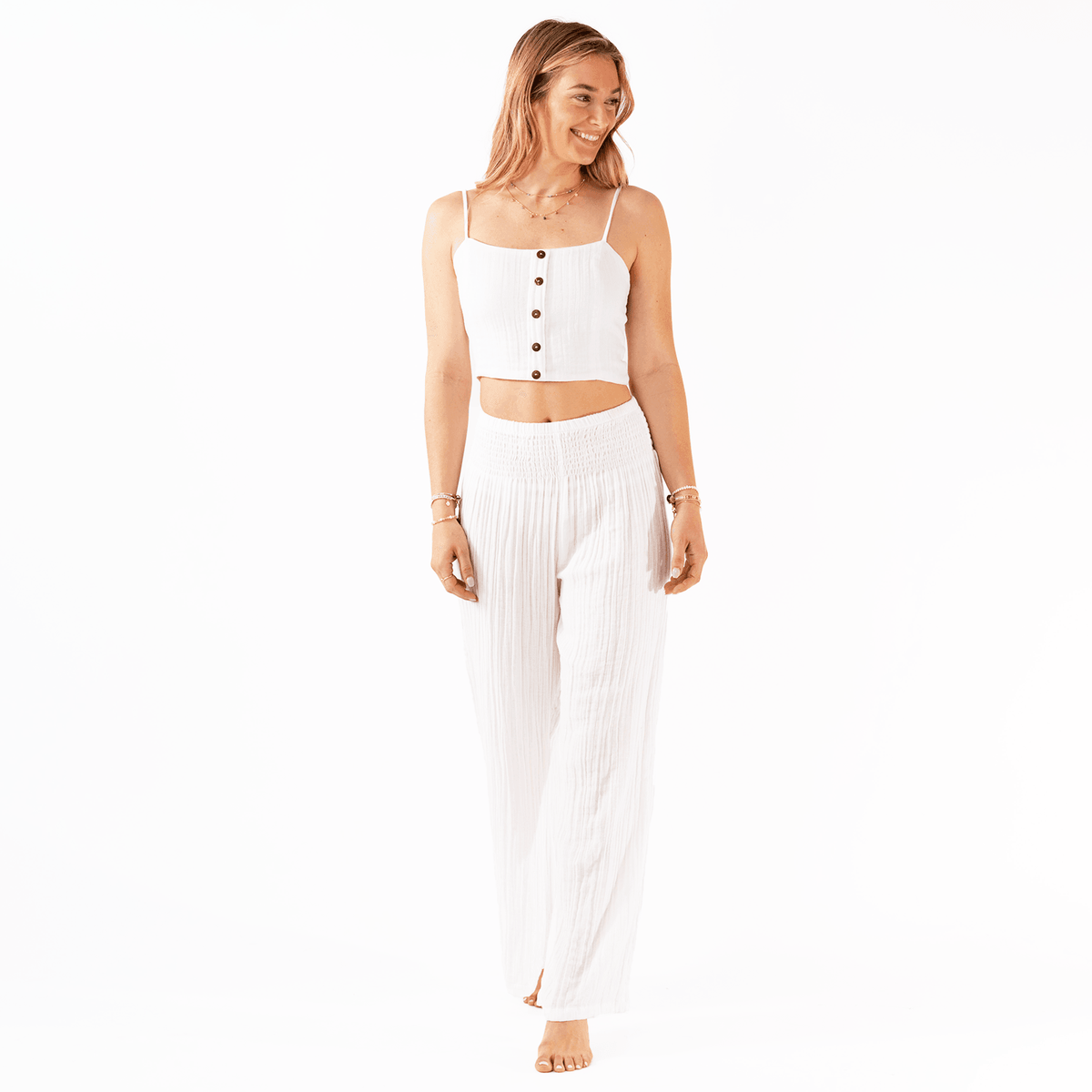 Two is always better than one! Introducing our dreamy lounge sets featuring our signature white Cruisin Crop Top and matching cotton wide leg pants. Wear them individually or as a full set for ultimate comfort!